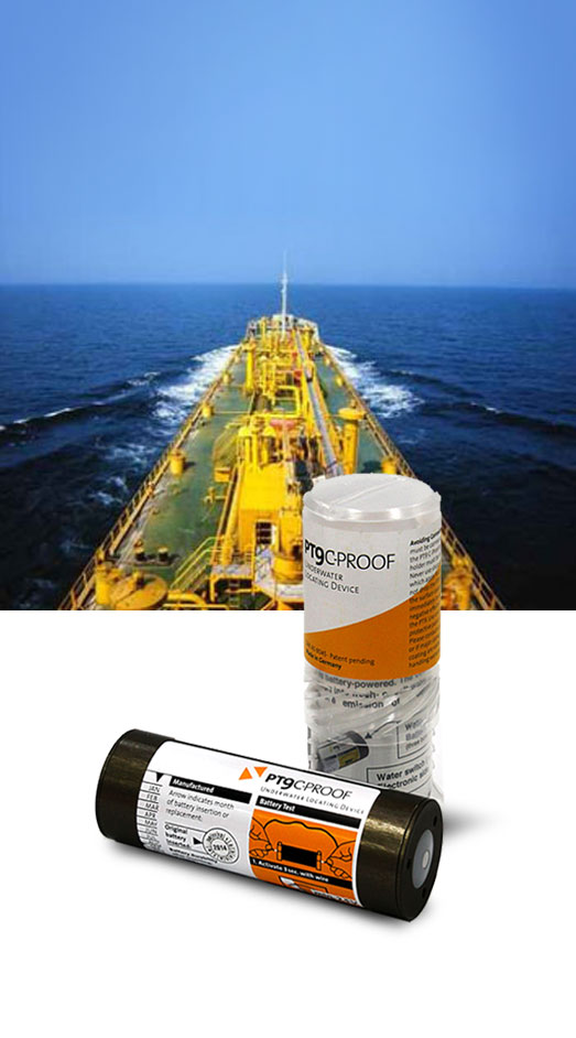 The PT9 C-PROOF is a seawater-proof underwater locating device according to SAE AS 8045, which has been specifically developed for the installation on data storage capsules/final recording Medias (FRM) of Voyage Data Recorder Systems (VDR/S-VDR). The PT9 C-PROOF has been designed to send a locating signal for at least 30 days in the case of being activated by water immersion.